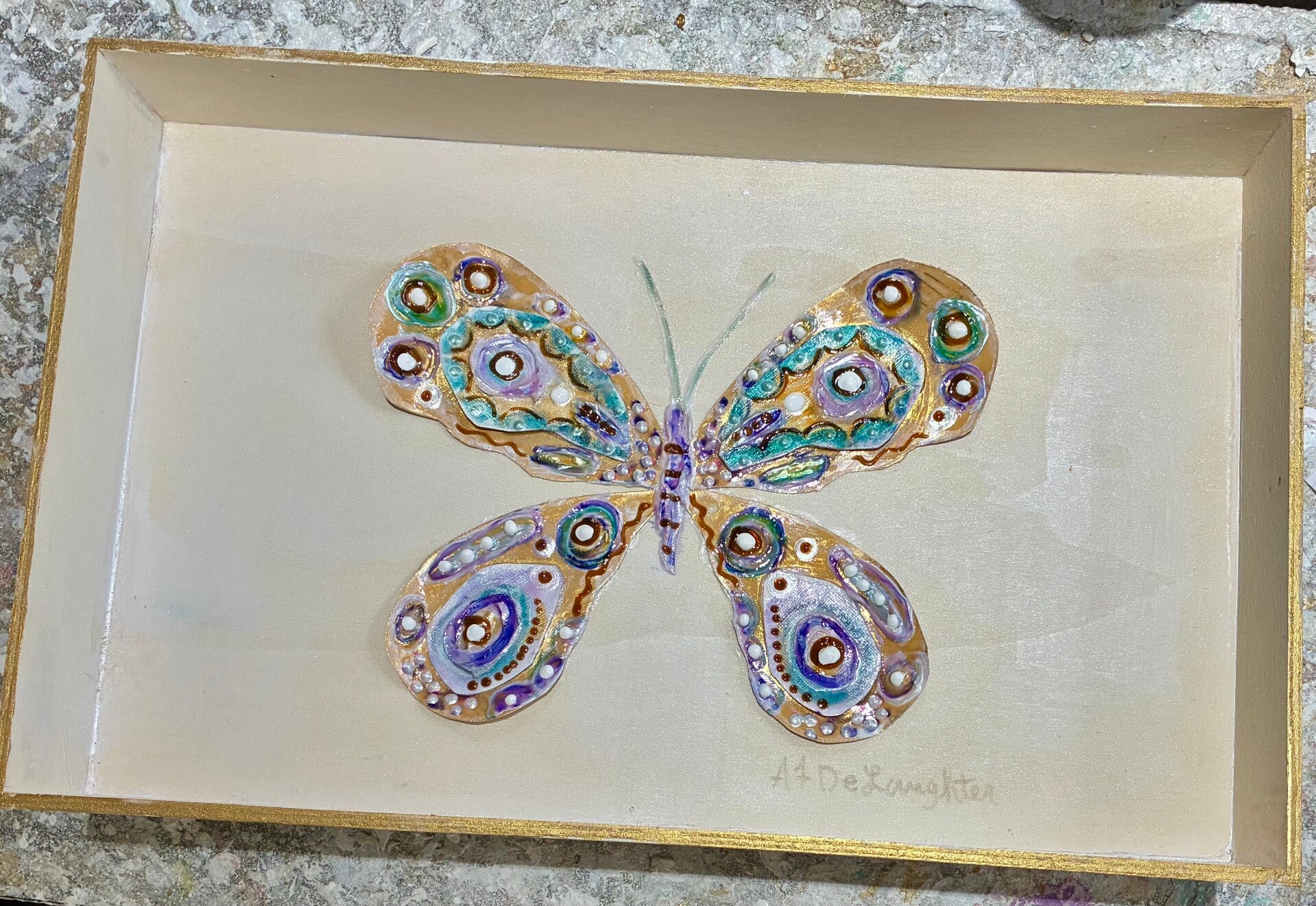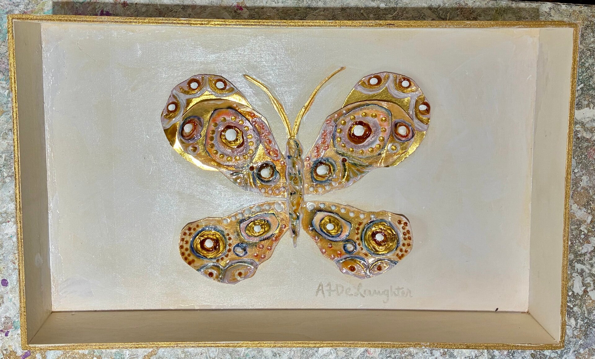 Step into a world where nature's delicate beauty takes on a new dimension. At Covered With Paint, Amanda DeLaughter brings you an exquisite collection of 3D butterflies and dragonflies, meticulously crafted to add a touch of golden elegance and whimsical charm to any space. Each piece is a testament to original artistry, designed to be a treasured statement in your home or a truly unique gift. Every piece is an original!