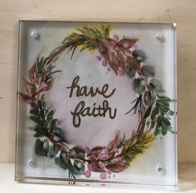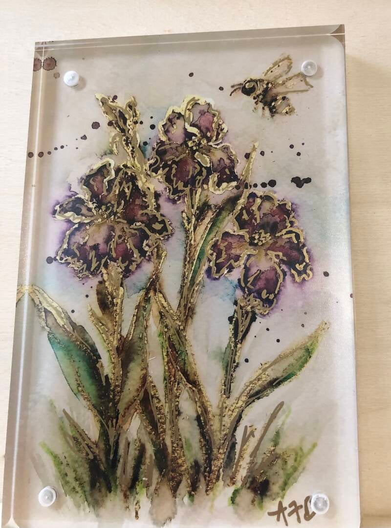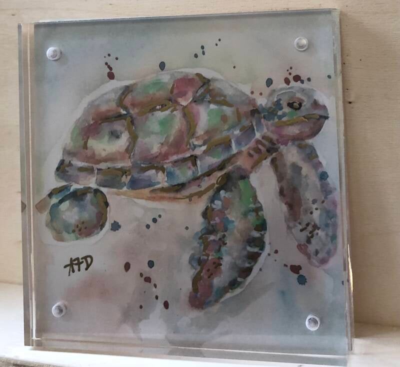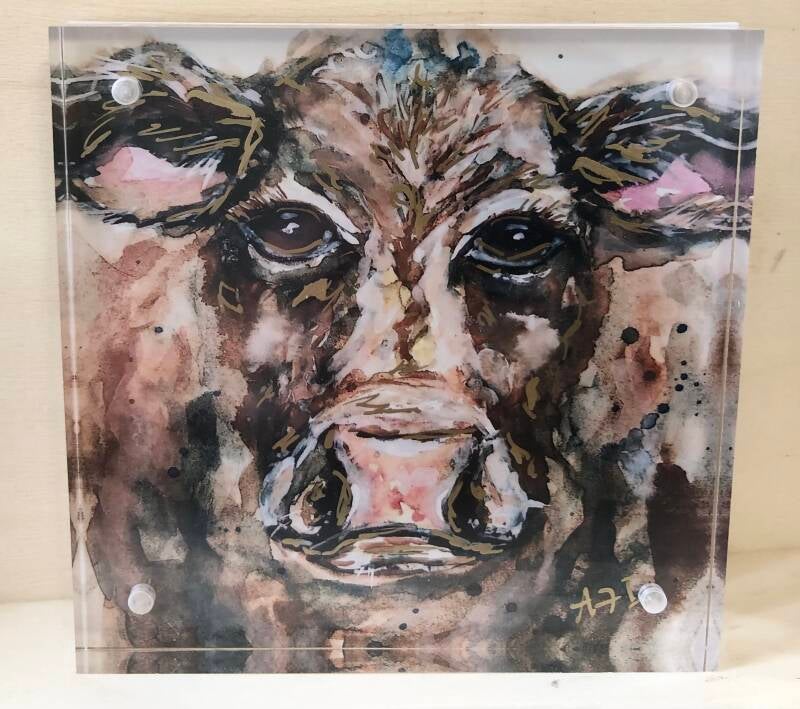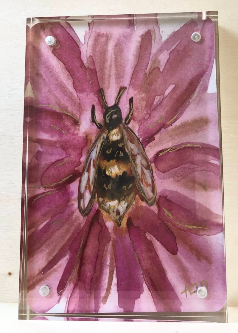 Hand gilded watercolor 4x6 and 4x4 prints in acrylic frames. Retail price $24.50 each.