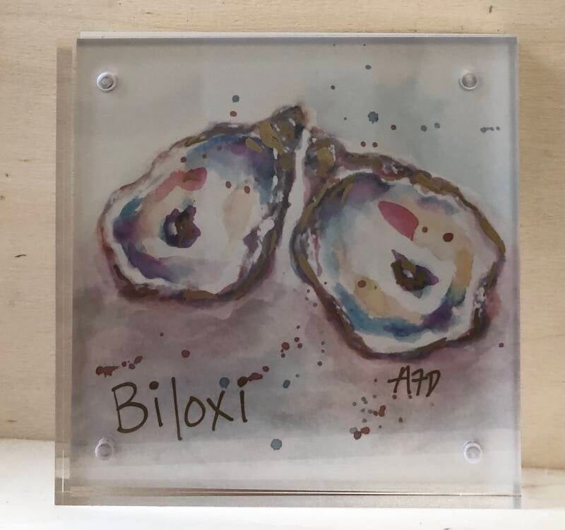 Hand gilded framed 4x4 watercolor oysters (personalized)