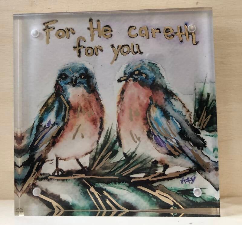 Hand gilded framed 4x4 framed watercolor bluebirds