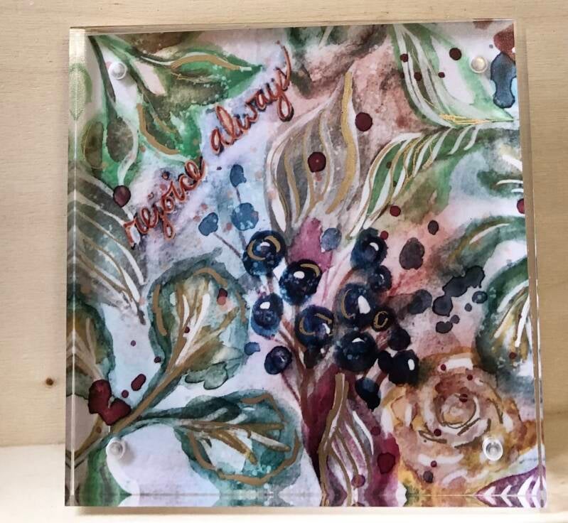 Hand gilded framed 4x4 watercolor "rejoice always"
