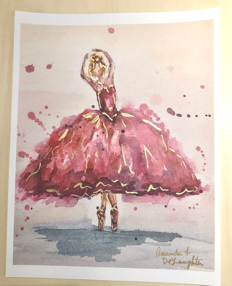 8x10 hand gilded watercolor ballerina