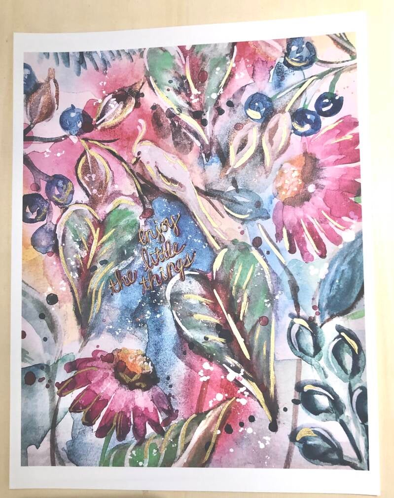 8x10 hand gilded watercolor "enjoy the little things"
